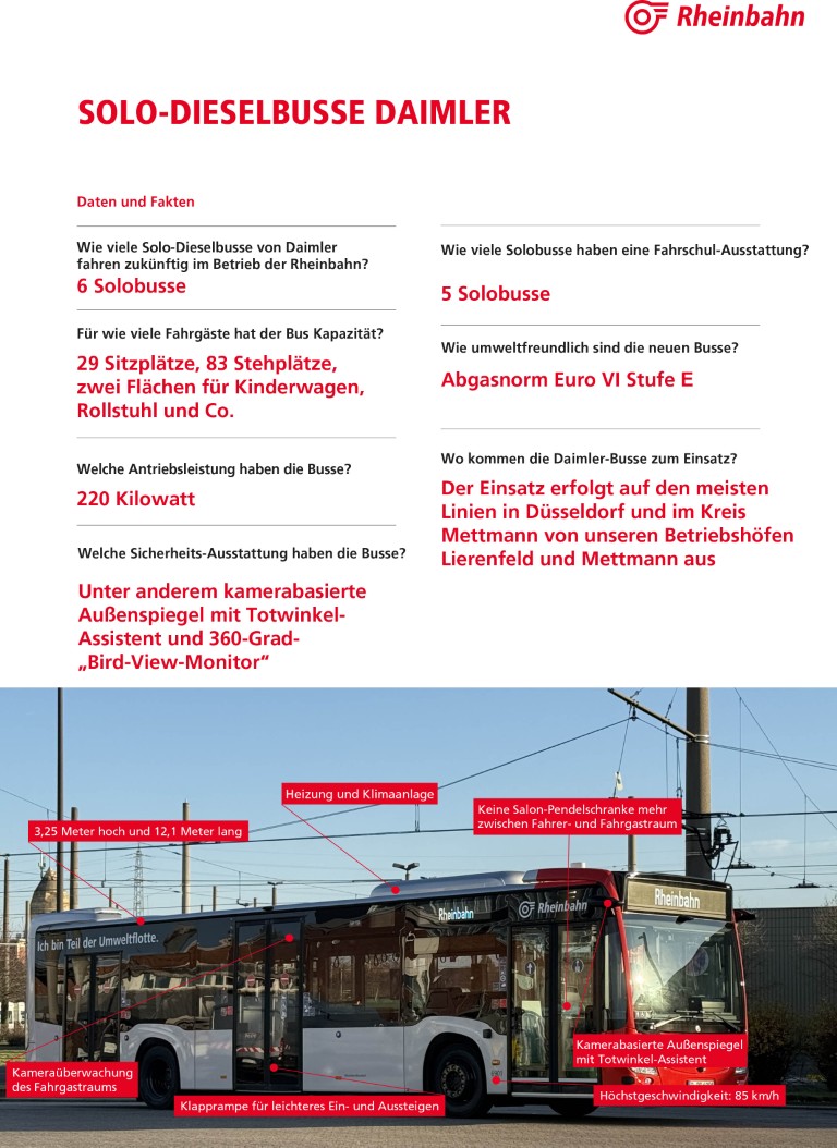 Warum die Rheinbahn neben Batterie- auch Dieselfahrzeuge angeschafft hat, erklärt Bereichsleiter Christian Finke. „Wir setzen auf eine klar definierte Transformationsstrategie. Während wir unsere Infrastruktur für batterie-elektrische und wasserstoffbetriebene Busse konsequent ausbauen, stellen wir zugleich sicher, dass wir in der Übergangsphase höchste Verlässlichkeit bieten. Die neuen Dieselbusse gewährleisten einen stabilen Betrieb und bilden eine notwendige Brücke auf dem Weg zu einer zunehmend klimafreundlichen Flotte.“ Zugleich richte die Rheinbahn ihre Flotte durch gezielte Investitionen in Batterie- und Brennstoffzellenbusse konsequent auf eine emissionsfreie Zukunft aus. „Unser Anspruch bleibt unverändert: ein leistungsfähiger, attraktiver und zukunftssicherer ÖPNV für unsere Kundinnen und Kunden“, betont Christian Finke.